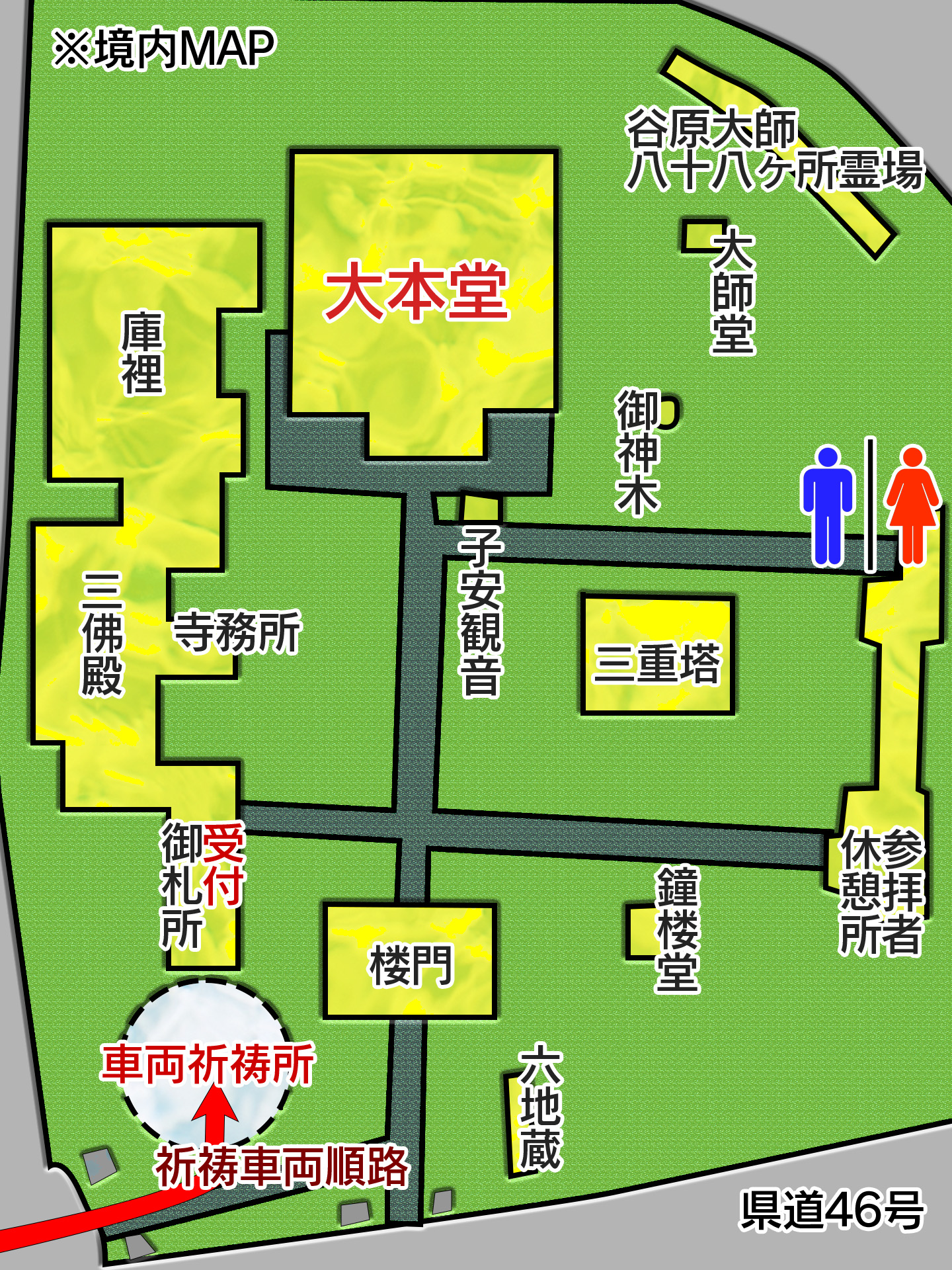 自動車祈祷の方は「車両祈祷所」その他の祈祷は「大本堂」で執り行います